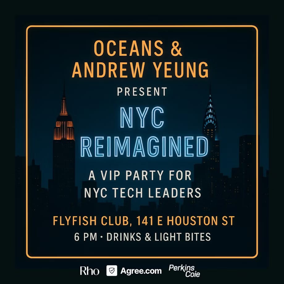Andrew Yeung and Oceans VC gathering 100 unicorn CEOs, investors, and NYC tech pioneers. Space is limited, invitations non-transferable. The kind of exclusive room where the next wave of NYC unicorns gets discussed before they're unicorns.